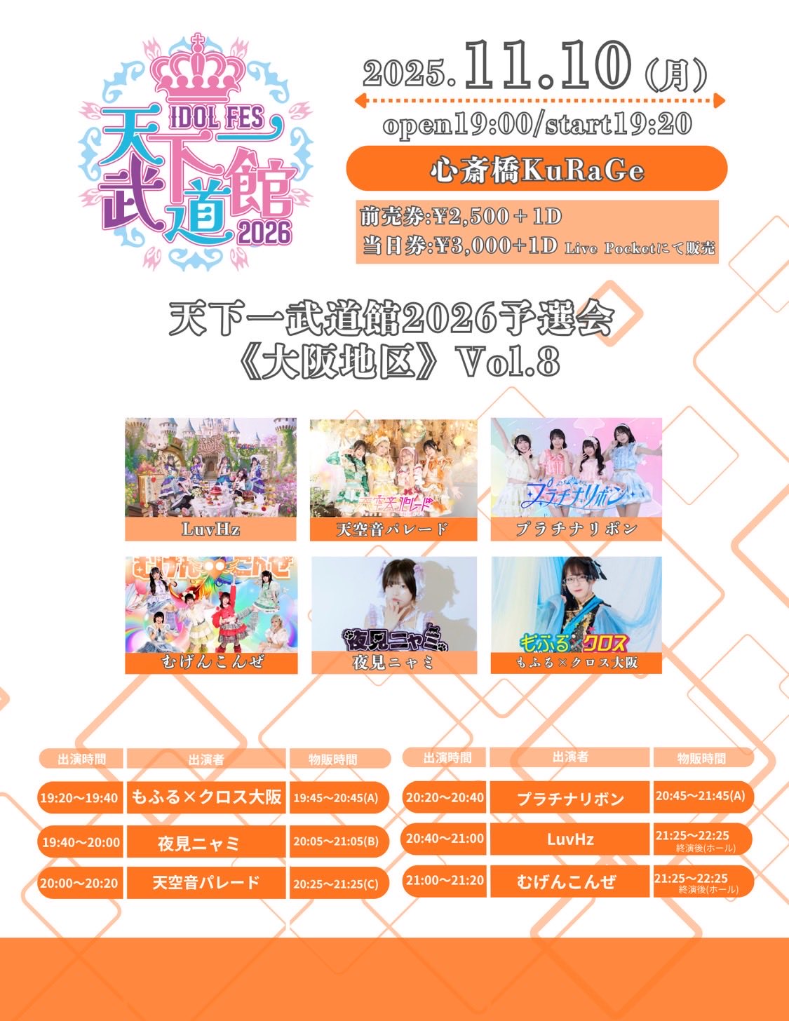 むげんこんぜ、LuvHz、もふる×クロス大阪、夜見ニャミ、プラチナリボン、天空音パレード