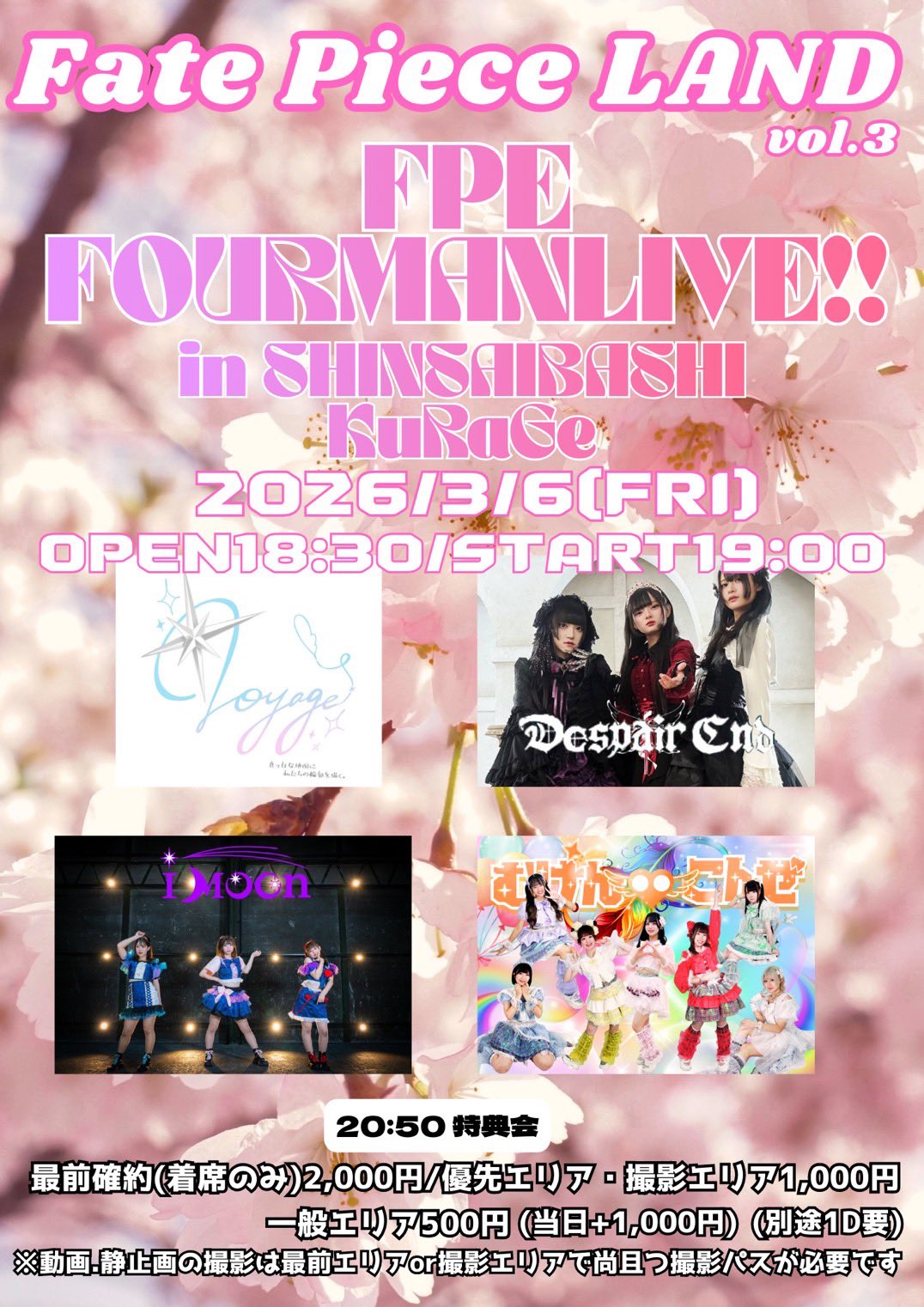 最前確約チケット¥2,000/撮影エリアチケット¥1,000/優先エリアチケット¥1,000/一般チケット¥500(ドリンク代別途600円)