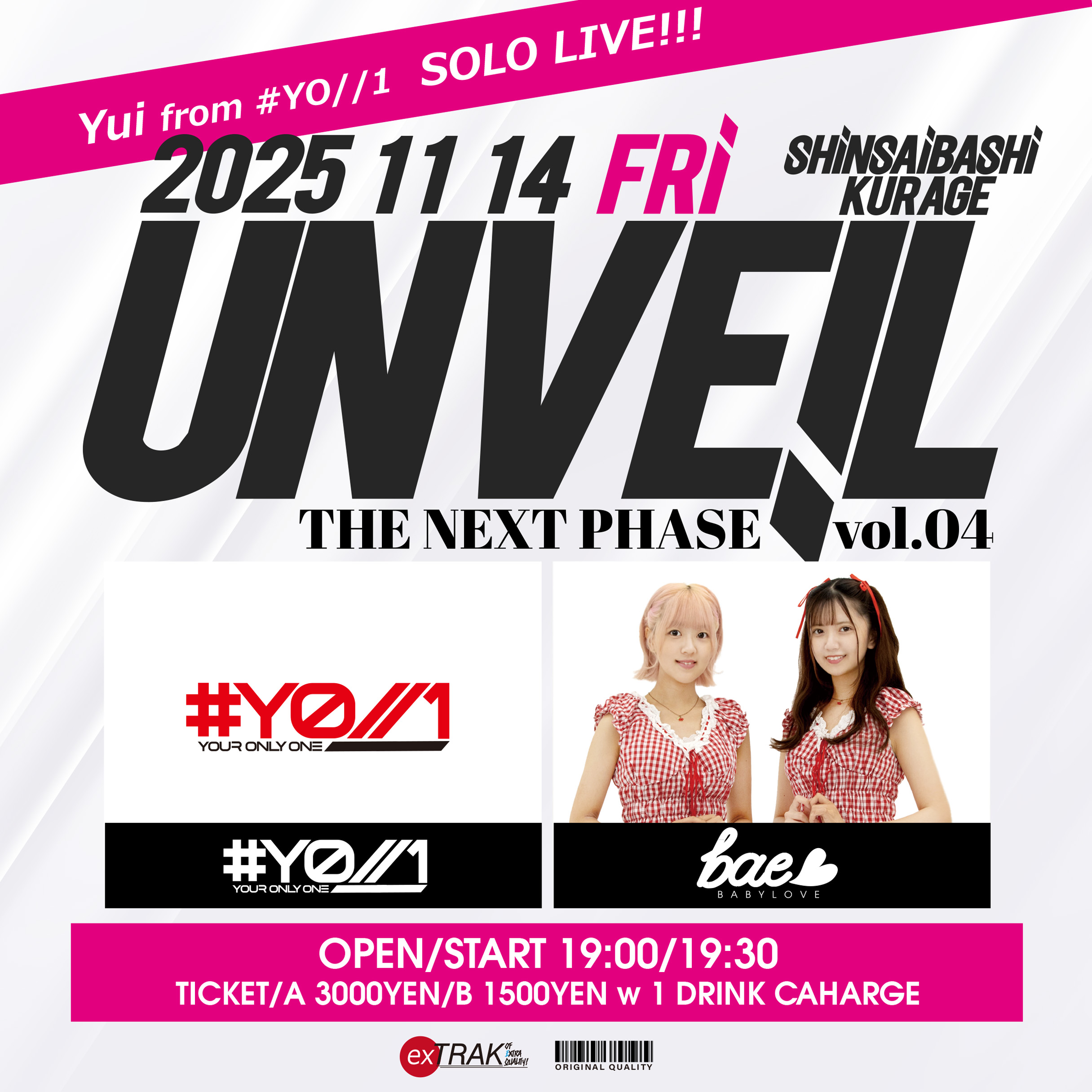 ・Aチケット 3000YEN/別途ドリンク代金※座席&撮影パス付き ・Bチケット 1500YEN/別途ドリンク代金