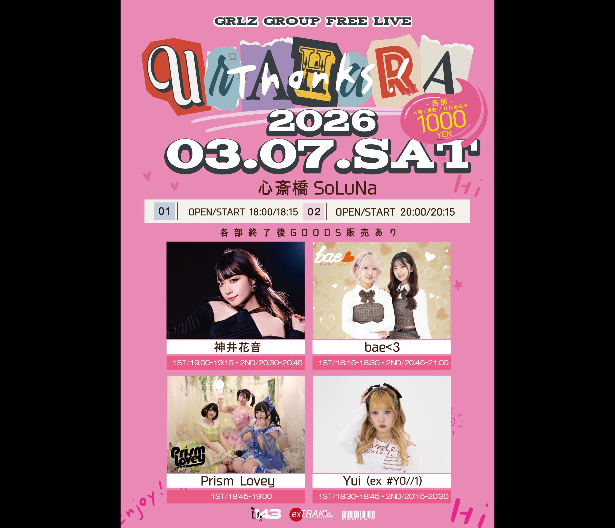 bae<3 / Yui (ex # YO//1) / 神井花音 / Prism Lovey(1部のみ)